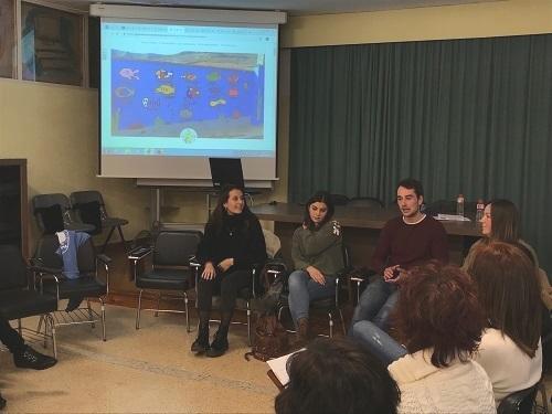 Los tres alumnos de la Universidad Europea del Atlántico realizaron la exposición de su proyecto ante veinticinco docentes de Educación Primaria y Secundaria. Se trata de un trabajo titulado “La educación activa es un arte”, cuyo contenido se ajusta a los procedimientos aprendizaje/servicio y se ha desarrollado dentro de la asignatura Educación musical, plástica y visual.