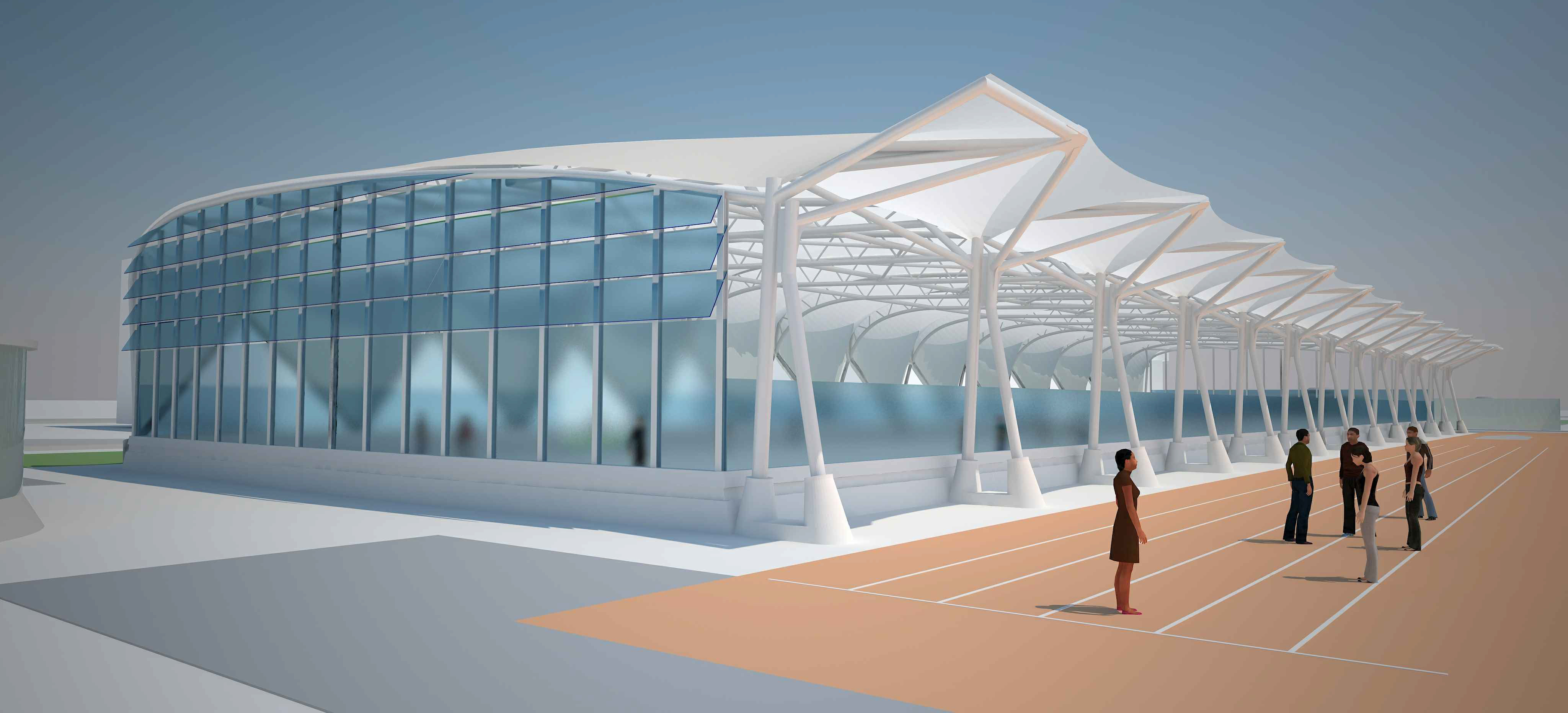 Este proyecto contará con una pista de atletismo formada por seis calles de 80 metros, pistas de pádel, tenis, una zona multideporte de arena, y otra de salto de longitud, lanzamiento de peso y disco. Todas ellas estarán al aire libre junto a un área recreativa de césped artificial de unos 3000 m² adicionales.