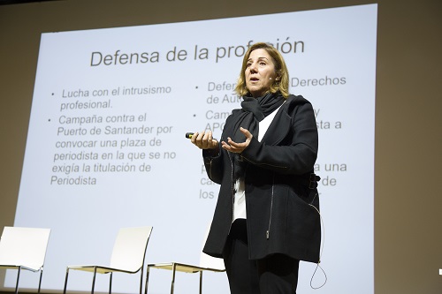 Gallardo resumió las principales líneas de trabajo de la asociación. “Por un lado luchamos contra el intrusismo laboral, que es un problema muy serio en nuestra profesión y además queremos desarrollar un código deontológico para combatir los bulos y las fake news”. En otro orden de cosas, la ponente aludió a labores como “la elaboración de una guía informativa para escribir sobre violencia de género. Ya tenemos la experiencia de una guía sobre discapacidad que ha permitido a los periodistas de Cantabria escribir con más precisión sobre términos relativos a este tema”.