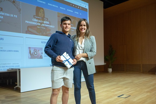 En el transcurso de un acto que se ha llevado a cabo en el campus, se han entregado los premios a las mejores categorías del blog. Todos los ganadores han recibido un libro además de un marca páginas en el que aparecía un pedagogo histórico; estos elementos habían sido confeccionados por alumnos de la asignatura Educación Plástica Visual, que imparte la profesora Patricia Izuel. Los premios han sido financiados por la Editorial Santillana la con la colección loqueleo.