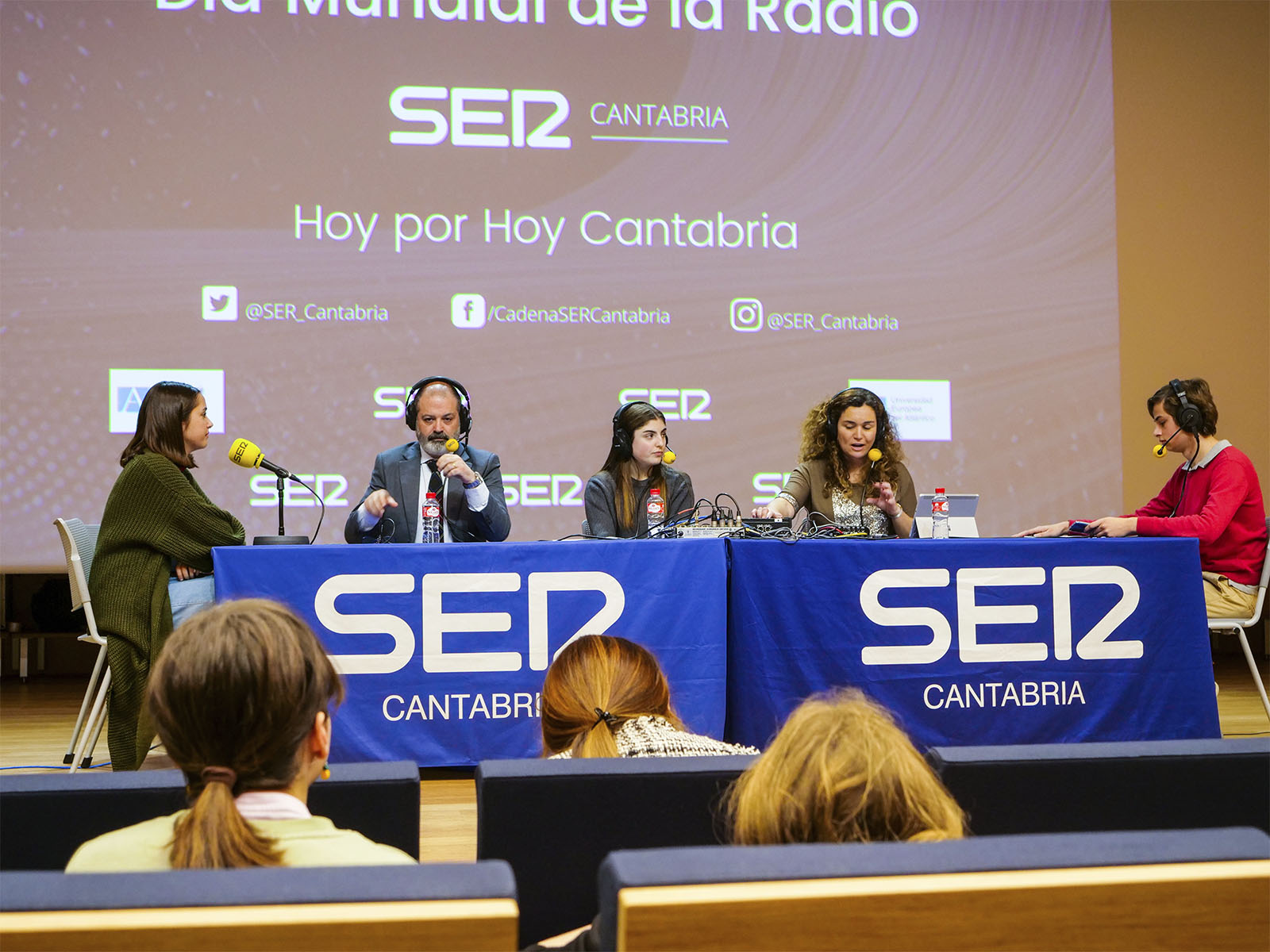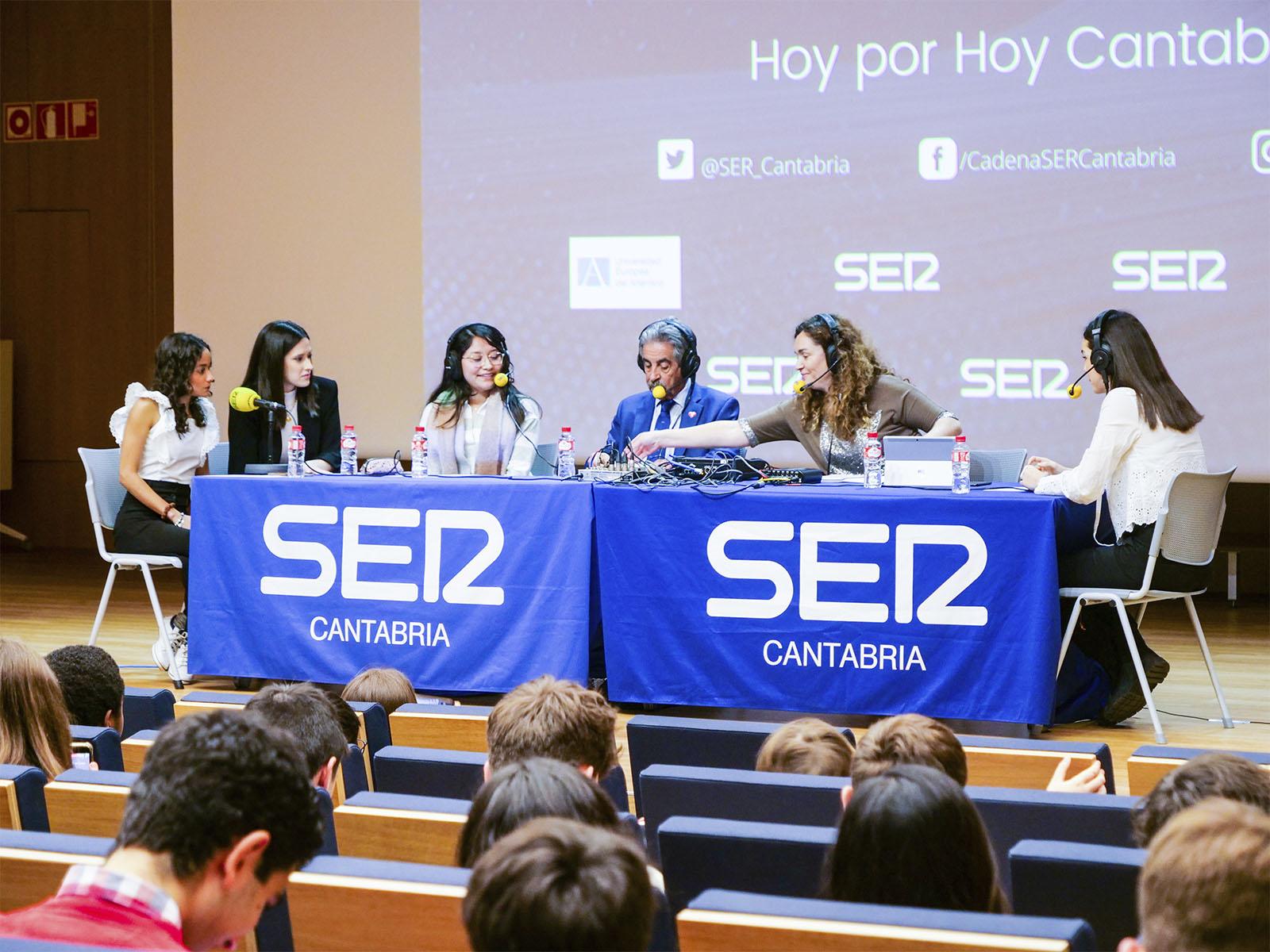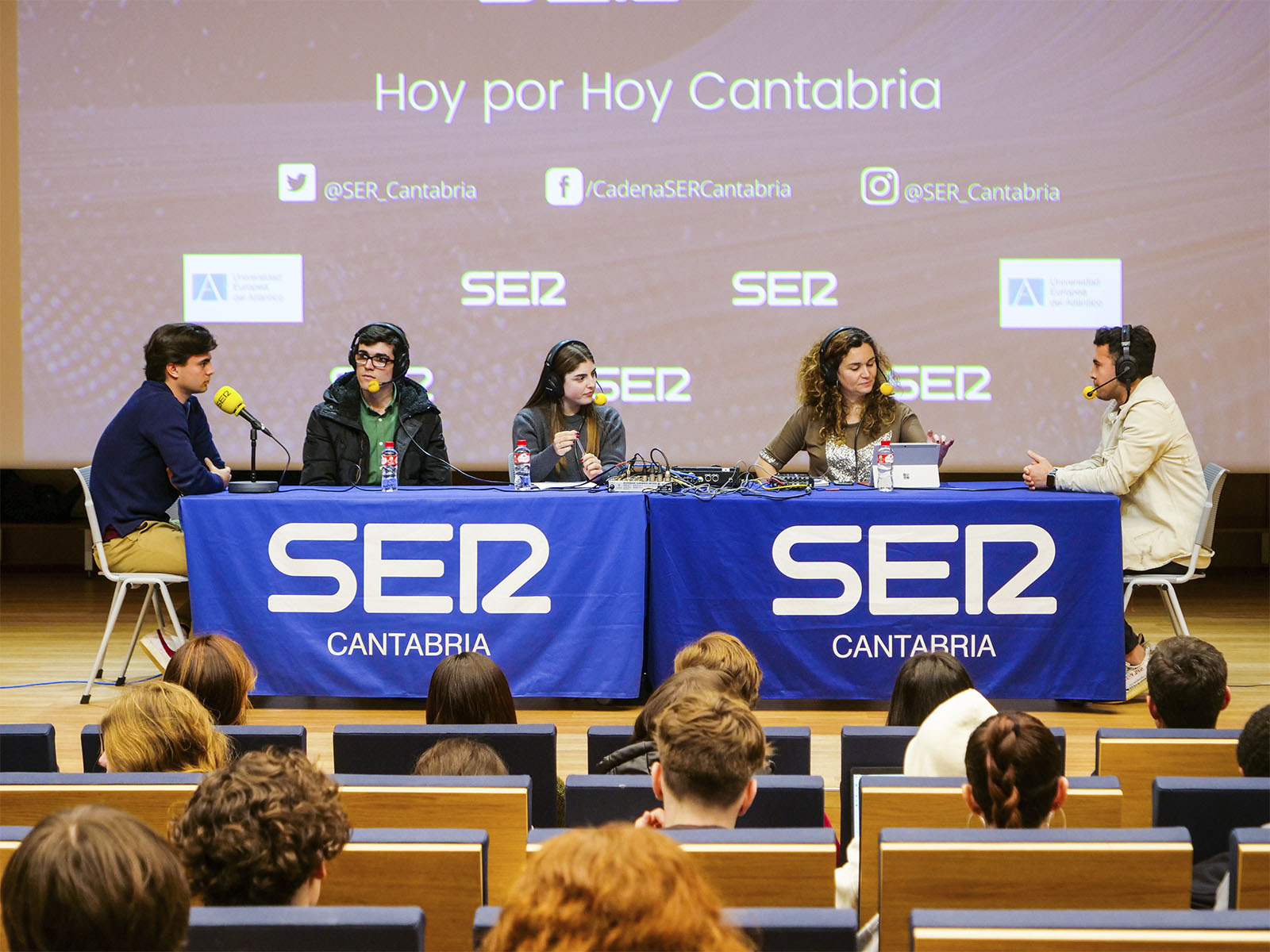 En esta ocasión, la periodista María Gutiérrez presentó el magazine local «Hoy por Hoy Cantabria» de la Cadena SER desde el salón de actos del campus, en un programa en el que han participado algunos miembros de la comunidad universitaria.