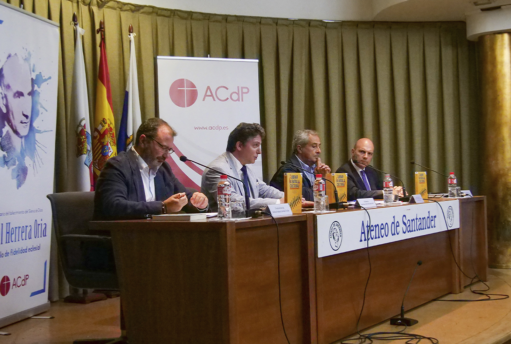 En esta mesa redonda, el profesor Durántez estuvo acompañado de Agustín Domingo Moratalla, catedrático de Filosofía Moral y Política de la Universidad de Valencia, y Francisco José Serrano Oceja, catedrático de Periodismo de la Universidad CEU San Pablo de Madrid. Además, ejerció como moderador Alfredo Alonso García, consejero nacional y secretario del Centro de Santander de la ACdP.