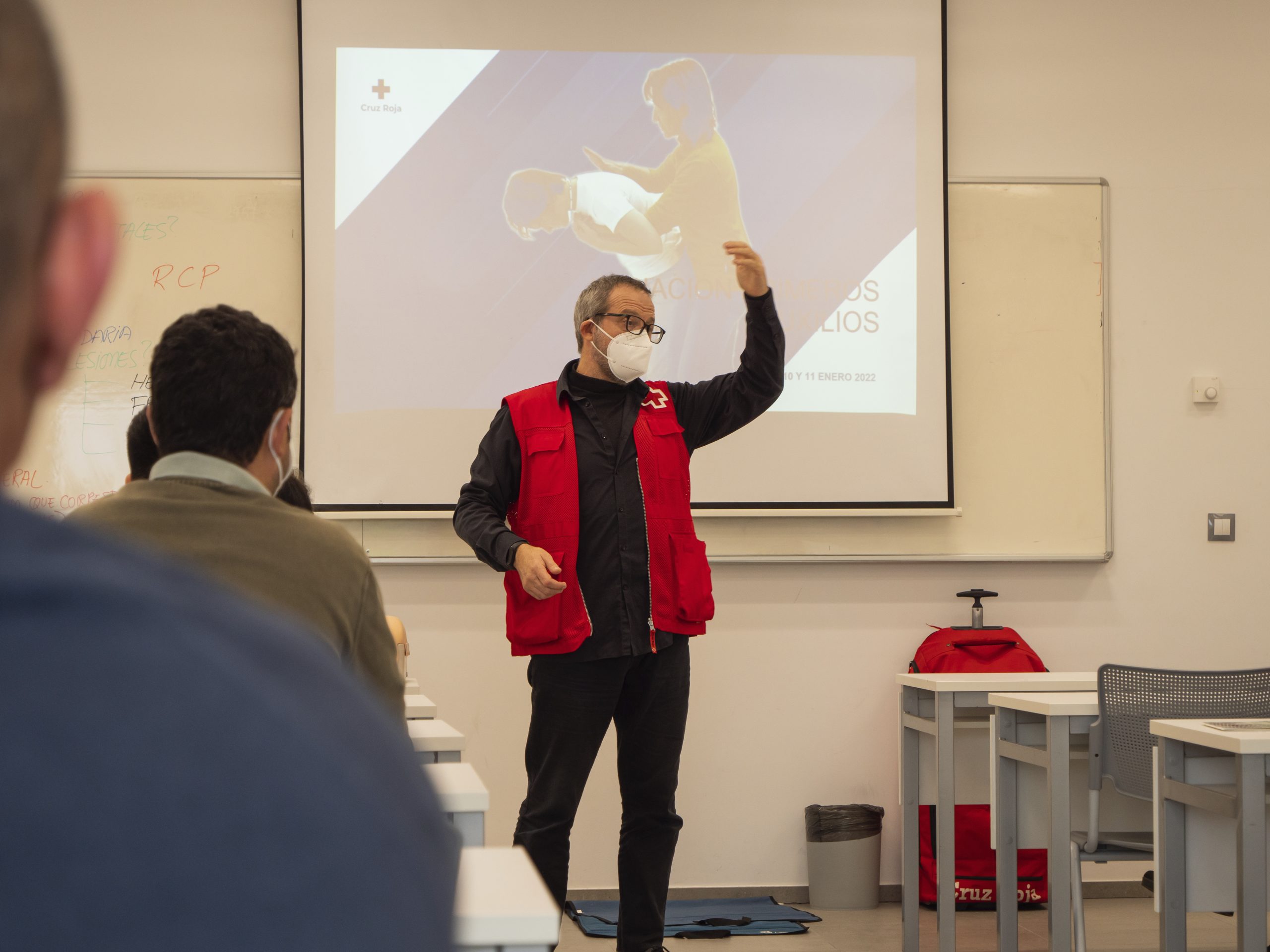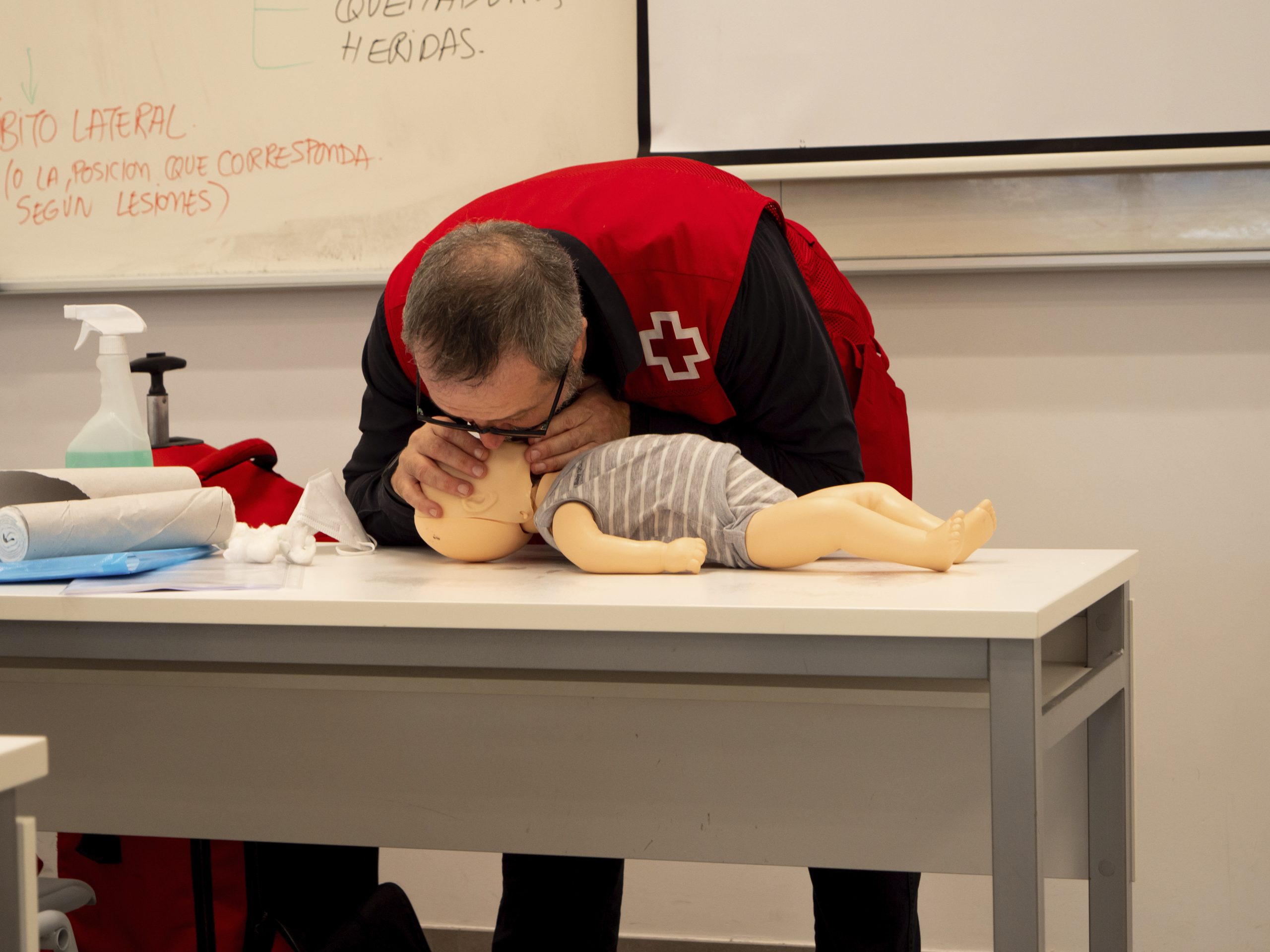 Durante la primera sesión, los asistentes obtuvieron nociones básicas sobre socorrismo, evaluación inicial y técnicas de reanimación cardiopulmonar. En este sentido, el formador de Cruz Roja señaló que “nuestro objetivo no es curar sino lograr que la persona se mantenga viva y no empeore”. Destacando, la importancia del protocolo PAS (proteger, avisar y socorrer). “En una cadena asistencial, los primeros auxilios son el eslabón más importante”, indicó.