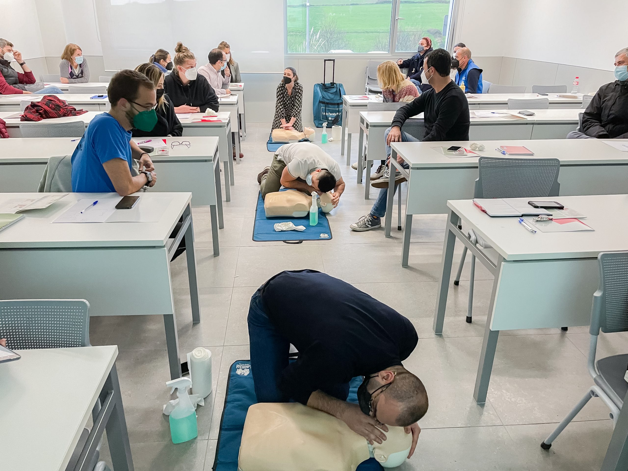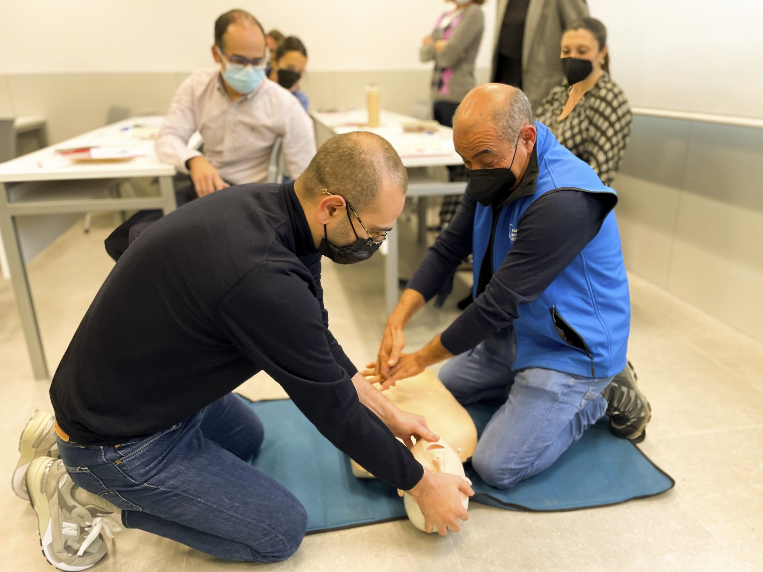 En esta primera parte de formación, los asistentes tuvieron la oportunidad de practicar las técnicas de reanimación cardiopulmonar, siguiendo las indicaciones del formador y realizando una tarea en cadena.