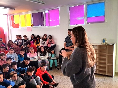 En primer lugar el profesor Sanz ofreció una breve charla a los alumnos de cuarto, quinto y sexto curso del colegio en la que les explicó en qué consiste la profesión de periodista, así como las razones que le llevaron a elegir este oficio. A continuación, Mireia Fernández se dirigió a los niños para contarles por qué decidió estudiar la carrera de Periodismo, así como el tipo de cosas que hace estudia en clase.