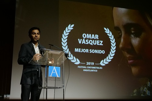 A continuación se fueron sucediendo las entregas de premios, realizadas siempre por estudiantes de los diferentes grados de UNEATLANTICO, que se emplearon con simpatía y humor. En primer lugar se anunció el premio al mejor sonido, que fue concedido a Omar Vásquez por “El dilema del arte”. El premio a la mejor actriz recayó en Cristina Valle por su trabajo en “Delirio”. Ache de H fue elegido mejor actor de entre las obras presentadas a concurso, por su actuación en “Souvenir”.