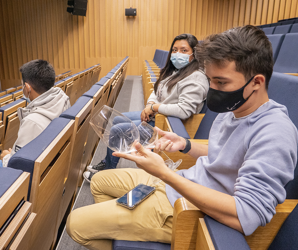 De este modo, los alumnos del grado en Gastronomía tuvieron la oportunidad de conocer las diferencias entre las copas y cristales empleados. Este taller finalizó con un coloquio entre los asistentes.