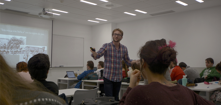 Macías, que es miembro de la Asociación Española de Historia Militar abrió su intervención citando al militar prusiano Carl Von Clausewitz quien afirmó que “la guerra es la extensión de la política” e invitó a los estudiantes a preguntarse si, hoy en día, se da propaganda bélica en España. La conclusión fue que “incluso en un periodo de paz y en un país particularmente pacifista como España se produce abundante retórica de la guerra”.