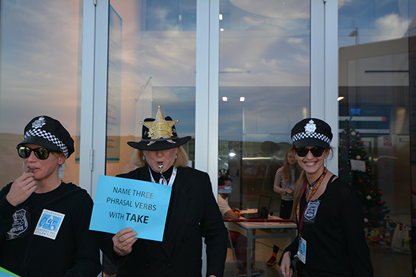 La regatista olímpica y alumna del grado en Ciencias de la Actividad Física y del Deporte, Berta Betanzos, fue la encargada de dar el pistoletazo de salida a la III San Silvestre Solidaria en su condición de madrina del evento. También el alumno de segundo de Periodismo Cayetano Guerra ejerció de speaker, animando la prueba y anunciando por megafonía a los ganadores de las dos modalidades premiadas: mejor disfraz individual y de grupo. El primero se lo llevó un alumno disfrazado de espantapájaros y el segundo fue a parar a los «piragüistas«.