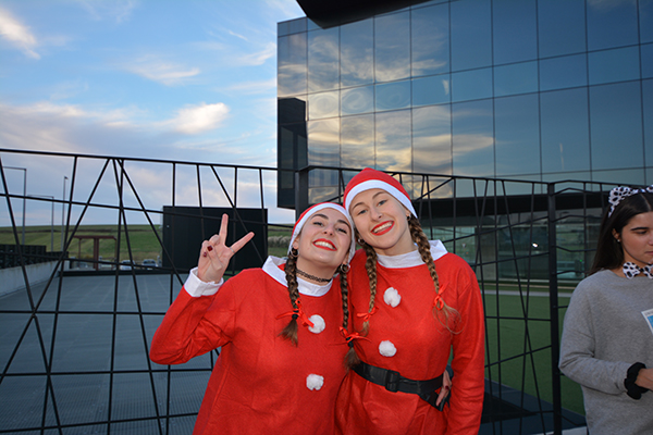 La Universidad Europea del Atlántico, a través del Servicio de Actividad Física y Deporte, organizó el jueves pasado su III San Silvestre Solidaria. Una carrera que cada año reúne en el campus universitario a profesores, alumnos, y personal de la casa para correr disfrazados una distancia de 3,2 kilómetros. Se puede decir que esta es la excusa, pero el objetivo último es pasar un día de fiesta en torno al deporte y recoger productos de primera necesidad para la Cruz Roja.