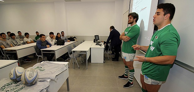 Una representación de jugadores del Independiente ha visitado el campus de la Universidad Europea del Atlántico donde han ofrecido una charla sobre rugby a los alumnos del grado en Ciencias de la Actividad Física y el Deporte (CAFYD) y les han invitado a presenciar un partido de Liga de División de Honor.