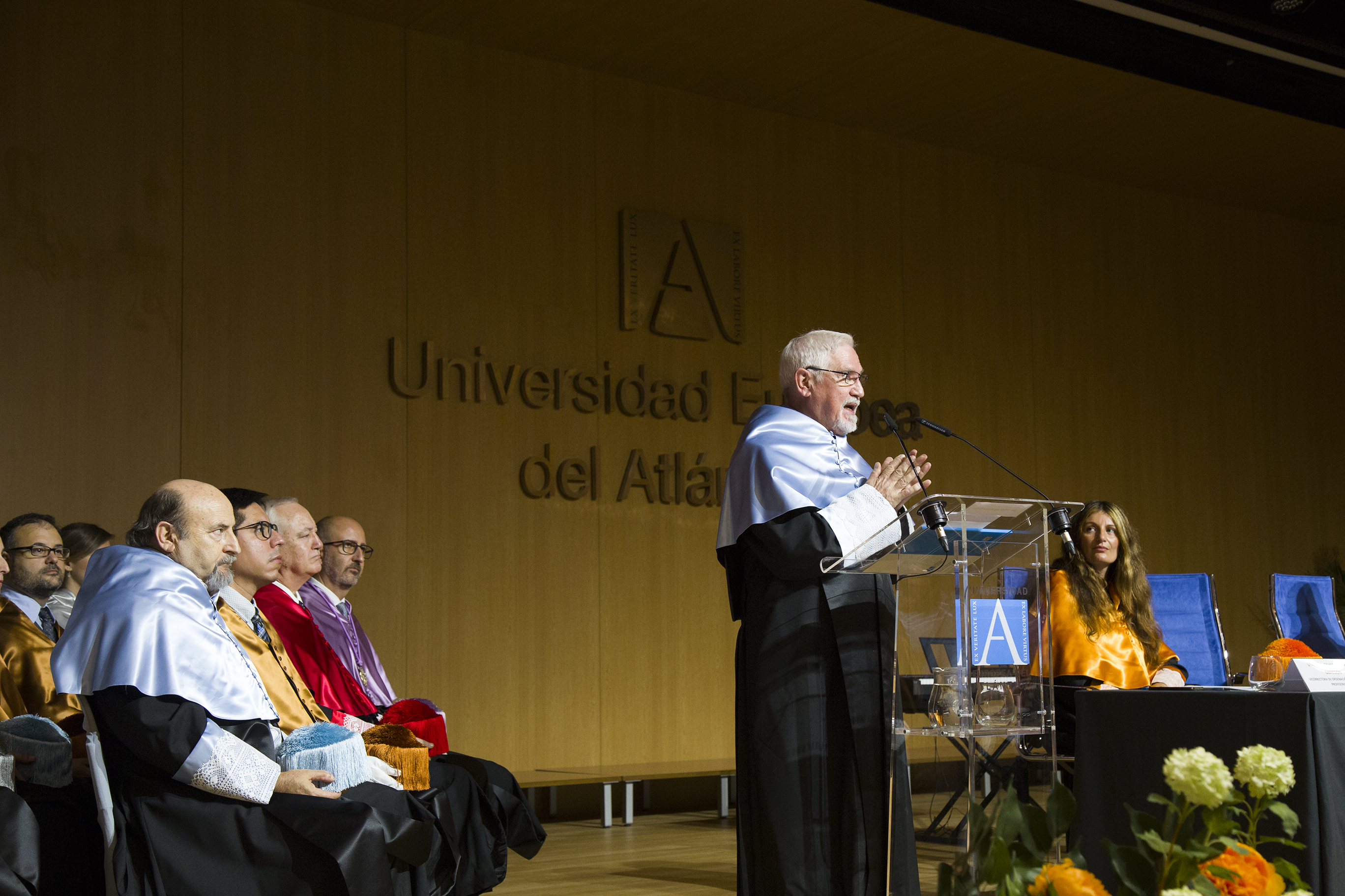 El secretario general de UNEATLANTICO, Roberto Ruiz, abrió el acto con la lectura de la memoria del curso 2017-2018 y, a continuación, el presidente del patronato, Jesús Arzamendi, impartió la lección inaugural bajo el título Aprovechemos la educación para mejorar el mundo.