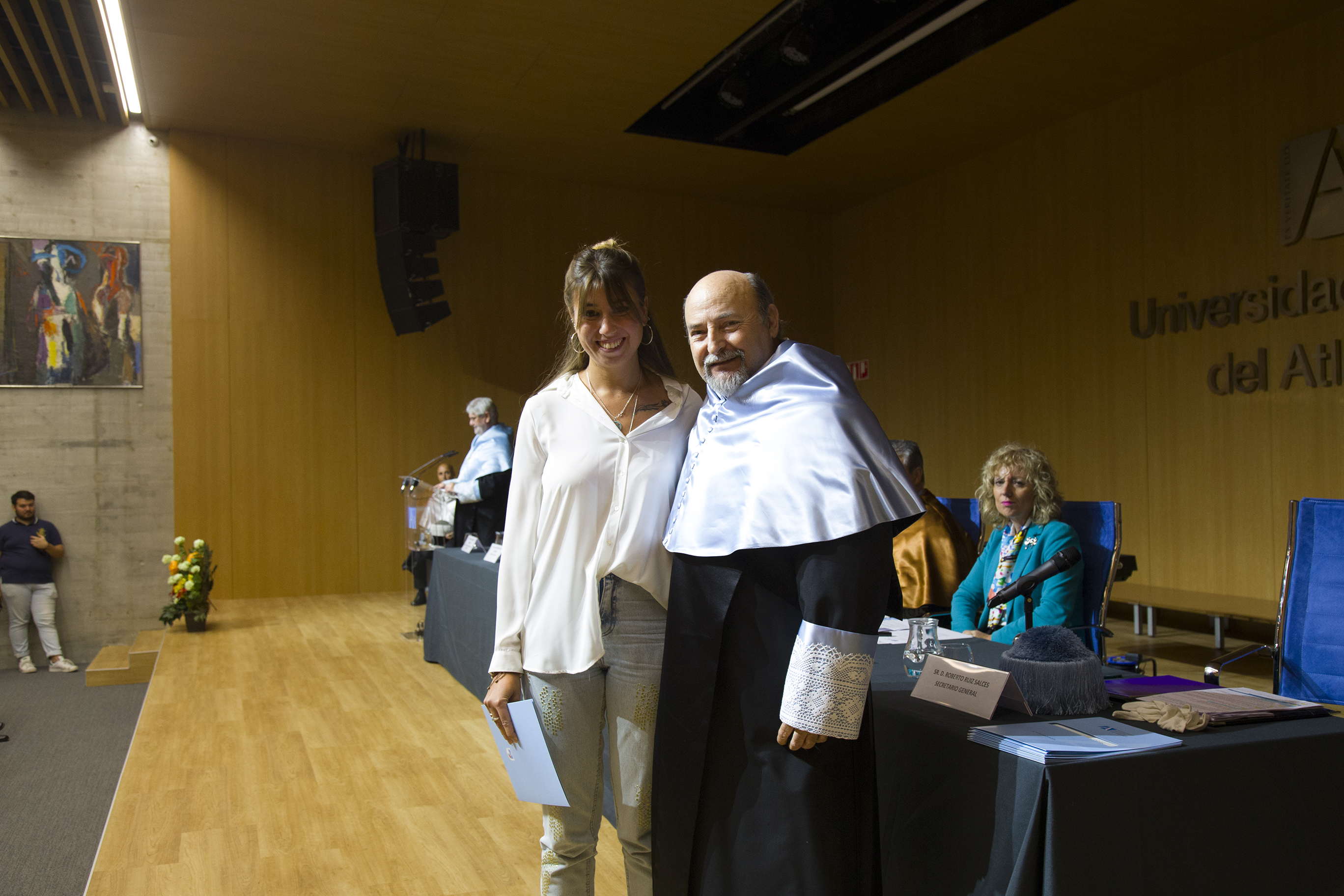 Durante el acto de apertura, los alumnos Carla Gutiérrez, Ana Villalba, Raquel Lobera, Roberto Cavielles, Yaiza Calleja, Joana Pardeiro, María Castanedo y Enya Sáinz fueron reconocidos también con un premio extraordinario a los mejores expedientes de la primera promoción de graduados de UNEATLANTICO en sus respectivos grados.