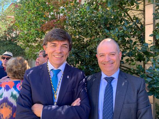 El rector de la Universidad Europea del Atlántico, Rubén Calderón, ha representado a la institución en el acto de homenaje celebrado por el noventa aniversario de la Universidad Internacional Menéndez Pelayo a través de la entrega de una medalla conmemorativa a los catorce rectores que han estado al frente de la UIMP antes del actual equipo rectoral.