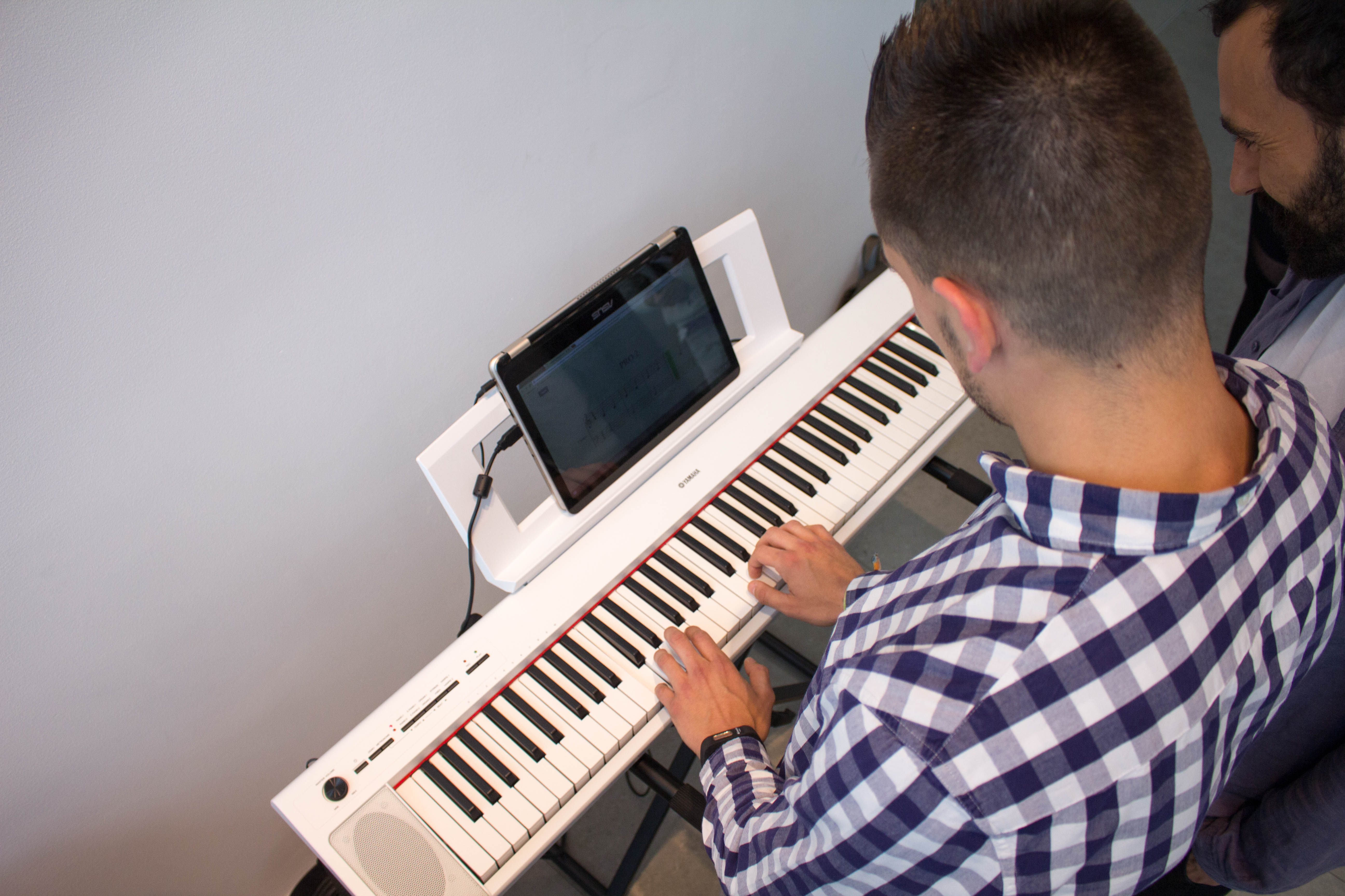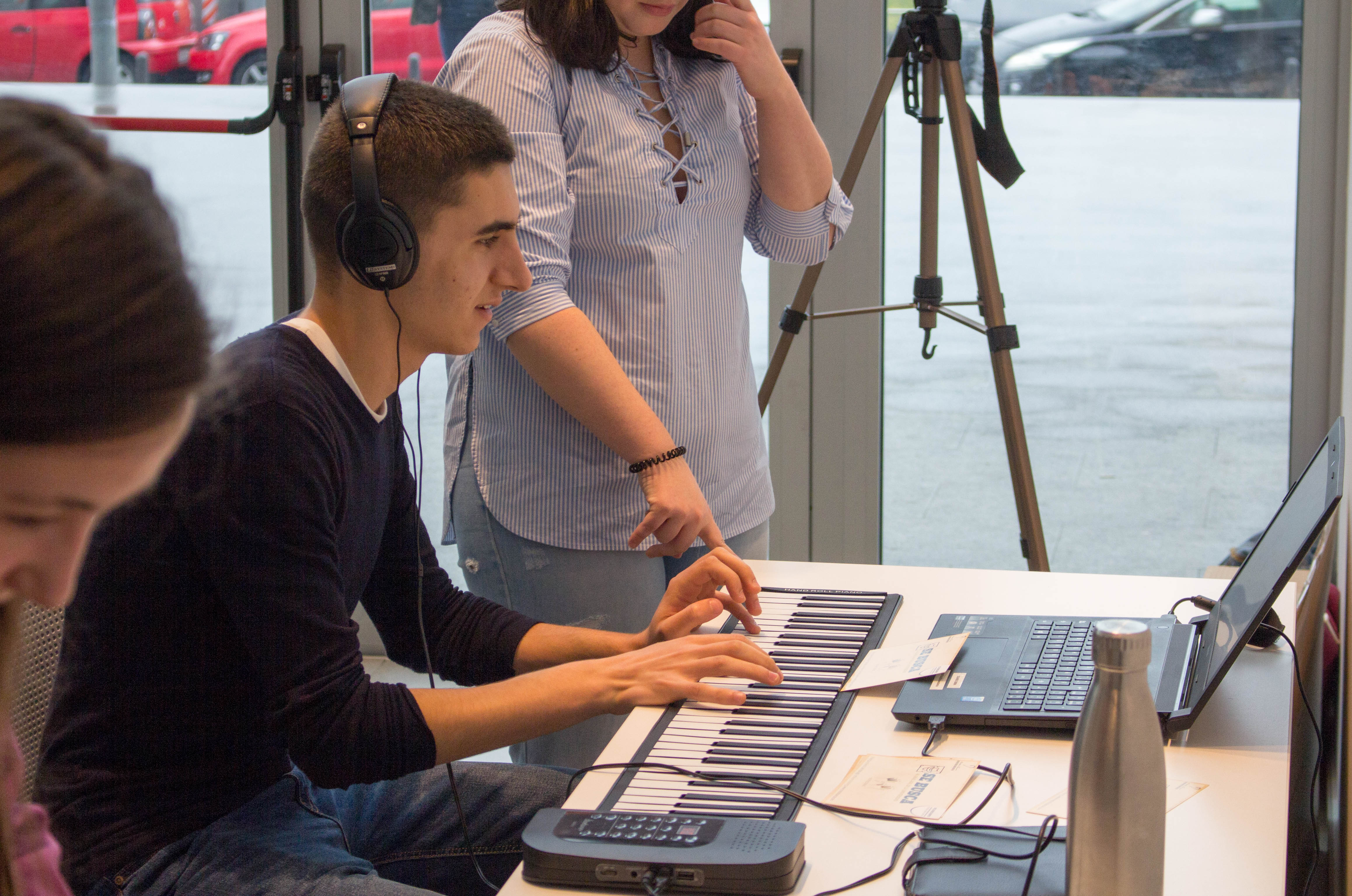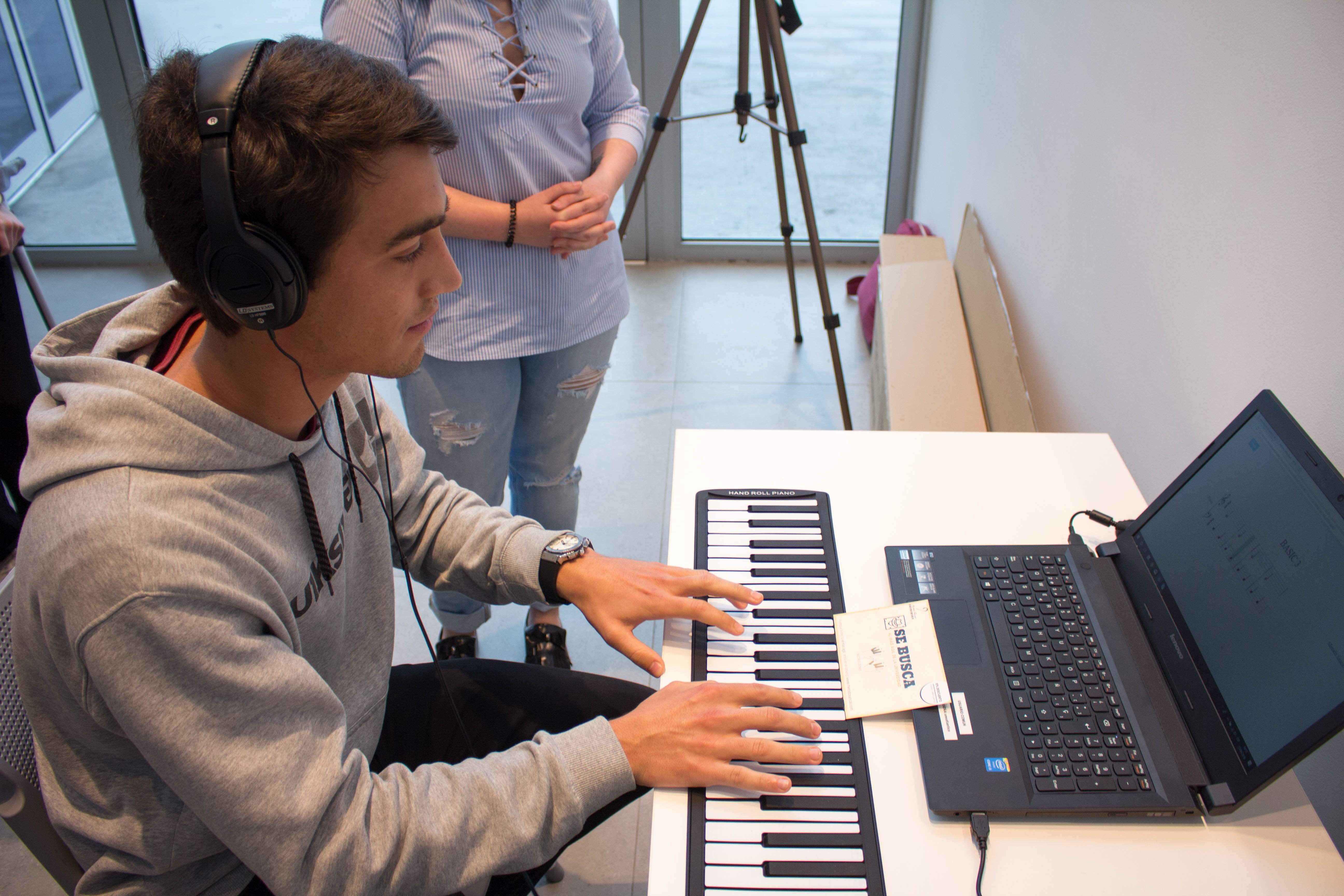 Para ello, la organización montó dos teclados con soporte informático en el hall de entrada de la Universidad y los alumnos demostraron su destreza al piano con la práctica de dos ejercicios.