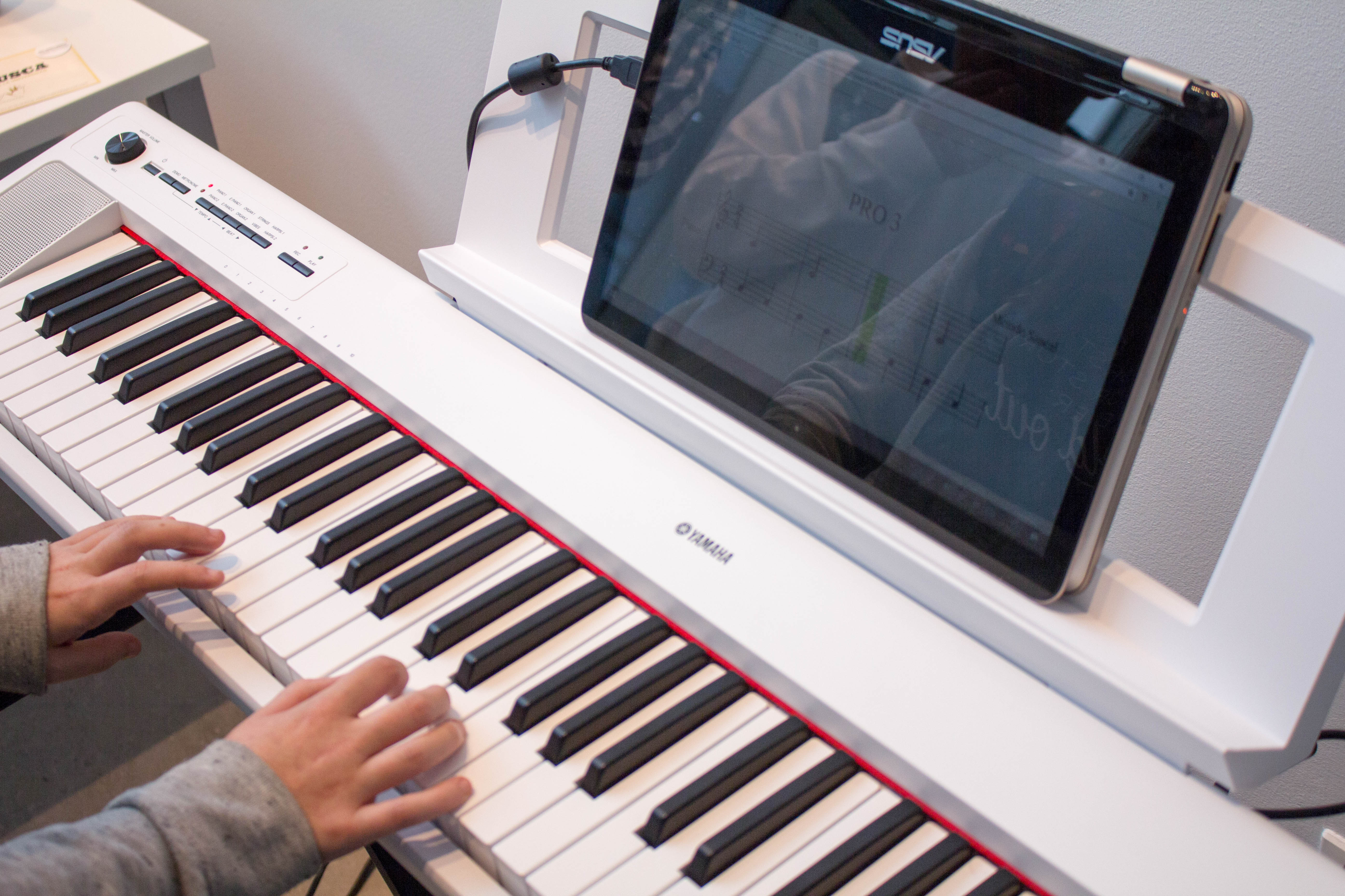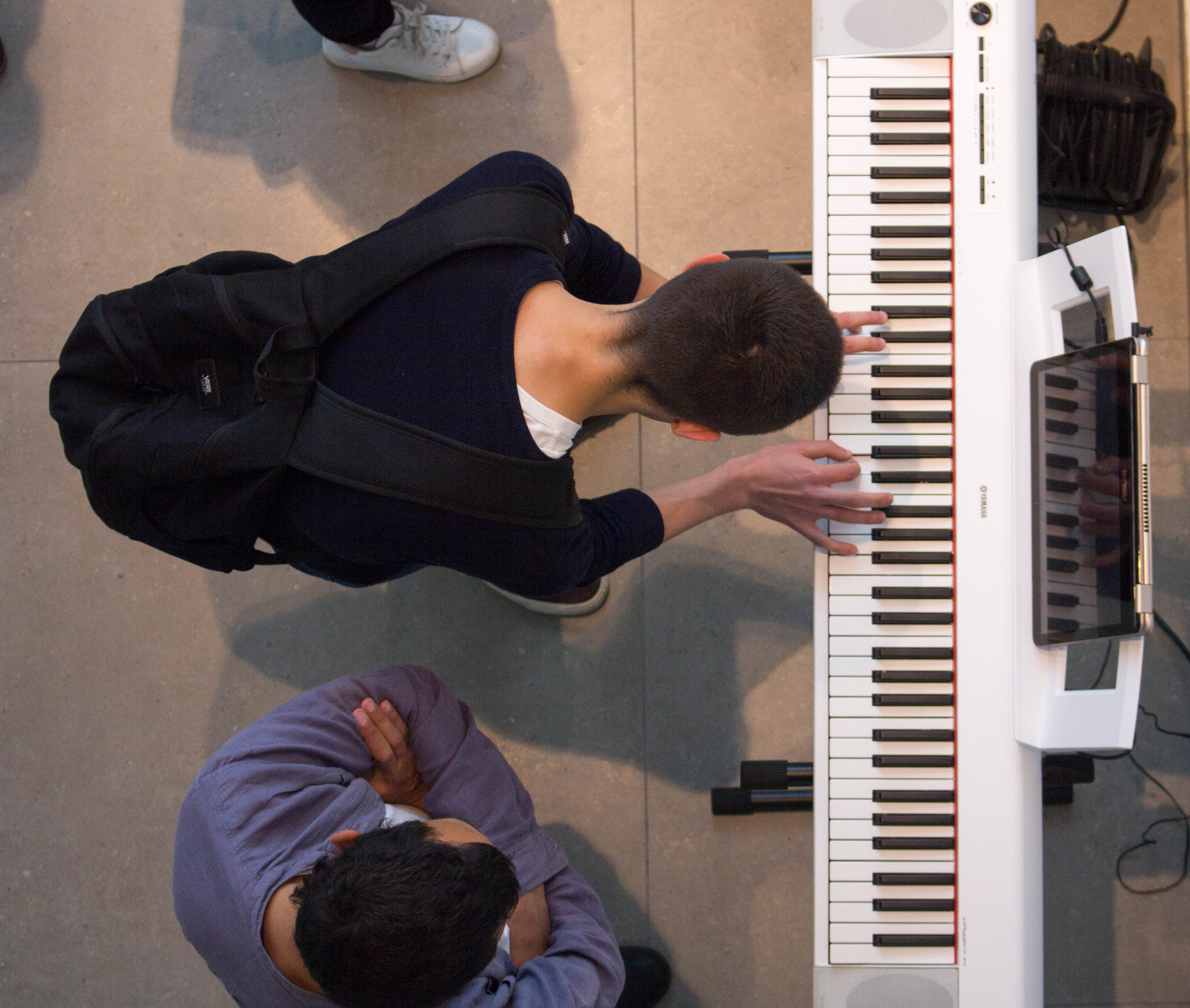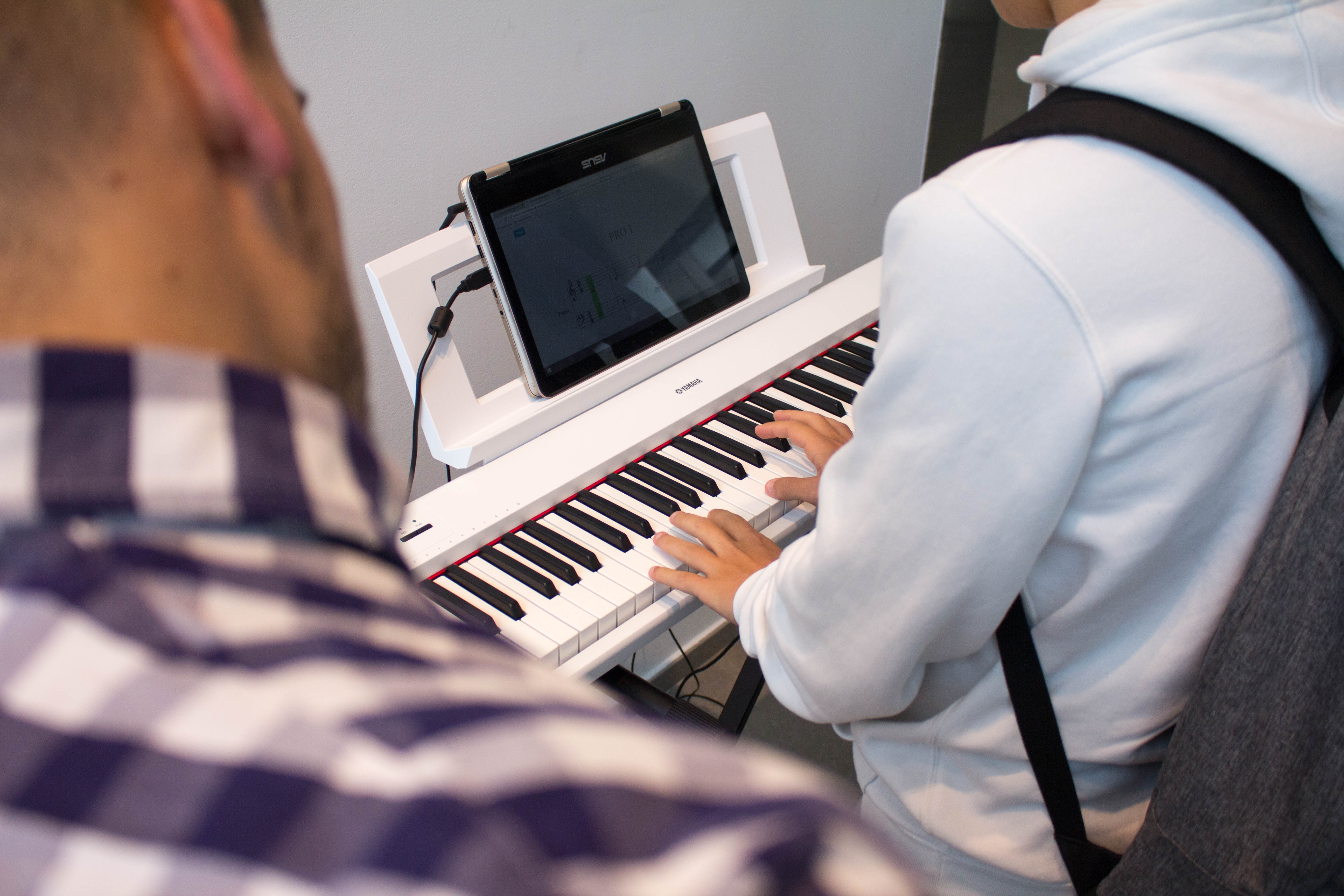 Para ello, la organización montó dos teclados con soporte informático en el hall de entrada de la Universidad y los alumnos demostraron su destreza al piano con la práctica de dos ejercicios.