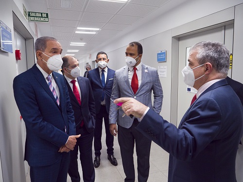 En la mañana del lunes, el Ministro Franklin García, el Viceministro Carlos Mendieta y el Consejero Rafael Menoscal fueron recibidos por el presidente de FUNIBER, Santos Gracia; el presidente de la Universidad Europea del Atlántico, Jesús Arzamendi; el rector, Rubén Calderón y el secretario general, Roberto Ruíz, con quienes visitaron los laboratorios del campus, el salón de actos, la emisora de radio, la sala de exposiciones, las aulas y las pistas polideportivas. De igual modo, pudieron recorrer los diferentes modelos de alojamiento disponibles en la Residencia de UNEATLANTICO, así como las facilidades deportivas y académicas de las que disfrutan los residentes.