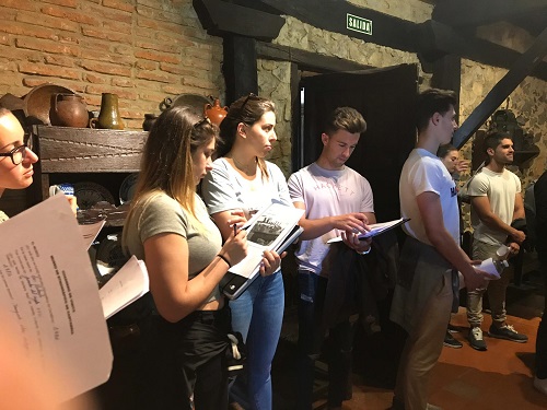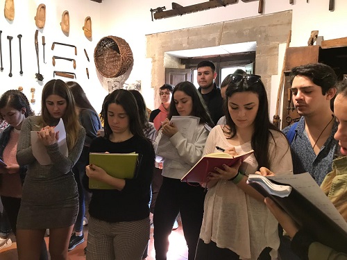 Esta visita estaba enmarcada en el programa de la asignatura Antropología y psicología del comportamiento alimentario, que imparte la doctora Carmen Varela. Para llevar a cabo su tarea, los estudiantes se dividieron en dos grupos, uno de los cuales trabajó inicialmente en el exterior, donde se exponen numerosos aperos y herramientas, y el otro lo hizo en el interior de la casa-museo. Posteriormente se invierteron los turnos.