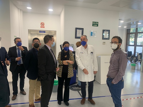Los visitantes fueron acompañados por el director gerente de Mutua Montañesa, Alberto Martínez Lebeña; Isabel Sandoval, directora de Prestaciones Sanitarias y Operaciones; Javier Pérez de la Torre, director del hospital; Juan Hernández, director de Modelo de Servicio y Digitalización y Carlos Ruíz, director Territorial de la zona Norte.