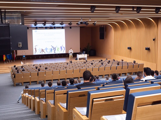 Los actos de bienvenida comenzaron con la introducción al grado en Ciencias de la Actividad Física y el Deporte en el Salón de Actos, habilitado para ser ocupado respetando las distancias reglamentarias. La presentación fue desarrollada por el coordinador, Aurelio Corral, quien ofreció palabras de ánimo a los nuevos estudiantes.