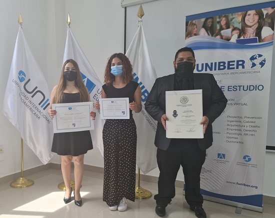 Por su parte, el director ejecutivo de FUNIBER de la Sede de El Salvador, el Ingeniero Carlos Perdomo, presidió el acto de entrega de títulos para estudiantes de este país que fueron becados por la institución y finalizaron satisfactoriamente sus programas de estudios, con la Universidad Europea del Atlántico y la Universidad Internacional Iberoamericana de México.