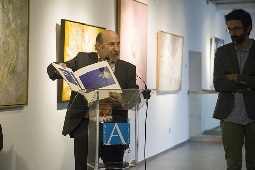 El escritor y poeta Marcos Díez ha inaugurado la muestra retrospectiva sobre el pintor Jaume Muxart, que ha tenido lugar en la sala de exposiciones de la Universidad Europea del Atlántico. En sus paredes cuelgan más de un centenar de obras del artista catalán -que falleció el pasado mes de marzo-, entre las que destacan series como “Ángels”, “Mariposas” o “Mediterránea”.