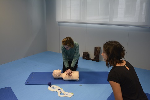 La respuesta ante la reanimación de una persona mediante RCP -tanto a niños como a adultos-, fue el punto principal del taller. Después de una parte teórico-práctica, desarrollando estos contenidos con maniquíes, los responsables sugerían casos que se pueden dar en la universidad para saber intervenir de forma eficaz.