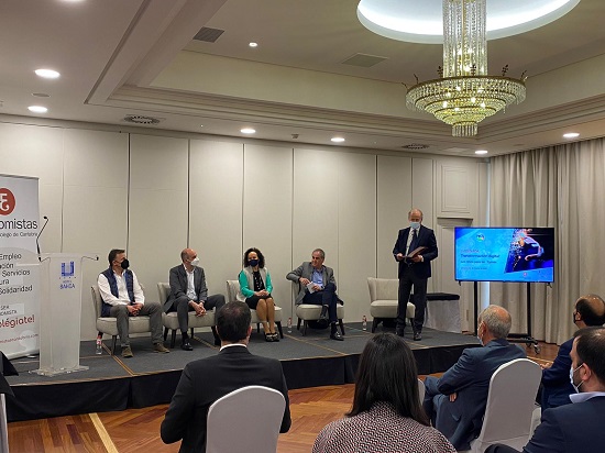 Estudiantes del grado en Administración y Dirección de Empresas de la Universidad Europea del Atlántico han acudido junto a su directora académica, la doctora Silvia Aparicio, a la II Jornada de Transformación Digital “Los retos para las pymes”, que se ha desarrollado en el Hotel Bahía, organizada por el Colegio de Economistas de Cantabria.