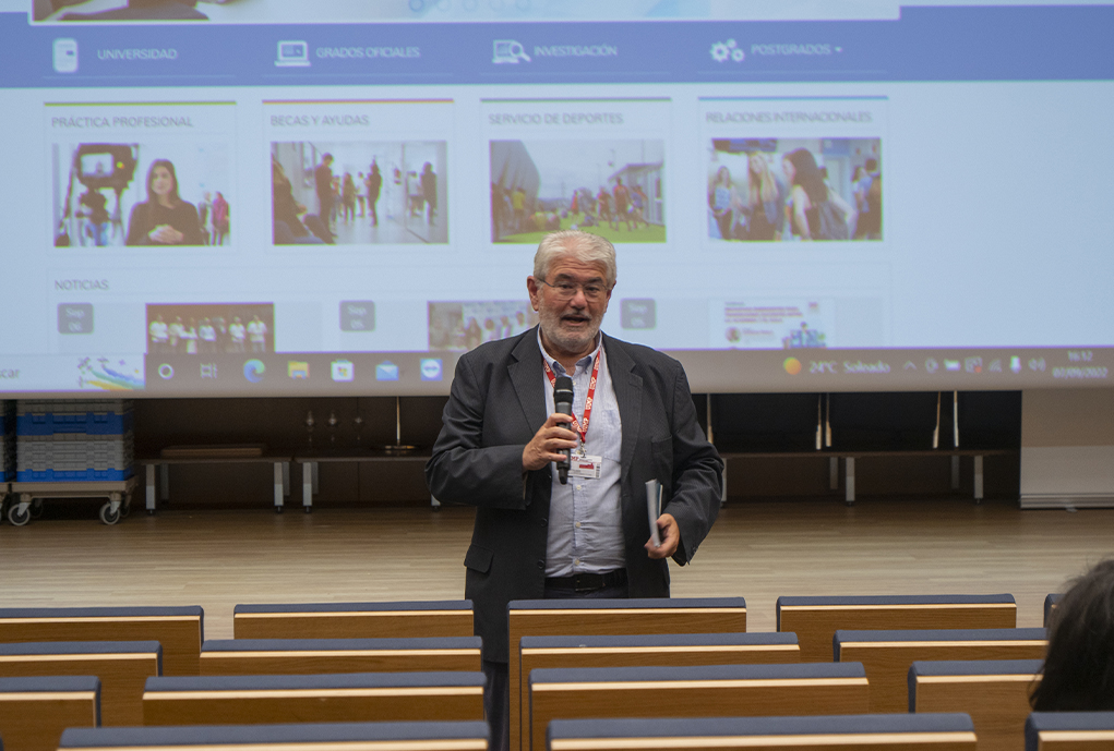 El vicerrector de Relaciones Internacionales y secretario general, Roberto Ruíz, dedicó unas palabras de bienvenida al nuevo grupo de docentes. Destacando en su intervención, el alto porcentaje de estudiantes internacionales de la Universidad «procedentes de cuarenta países diferentes».