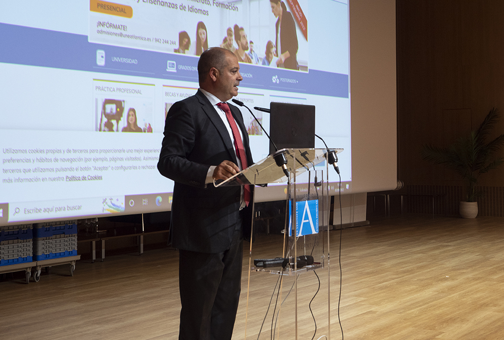 El rector de UNEATLANTICO, Rubén Calderón inauguró el acto de presentación del nuevo profesorado y versó acerca de la estructura de la Universidad, las diferentes facultades y los quince grados oficiales que las constituyen. «Lo más importante es que tengáis voluntad docente ya que la Universidad no está para generar obstáculos sino para enseñar y facilitar el conocimiento a los estudiantes» señaló Rubén Calderón.