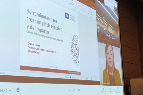 El pasado 18 de marzo se celebró el primero de los tres talleres intensivos para formar a los futuros emprendedores en habilidades comunicativas, para el cual se contó con Sara Lobete, emprendedora y CEO en Sempiternity, quien, además, cuenta con una amplia experiencia en agencias de comunicación así como en hubs de emprendimiento, y su colaboradora Cristina Febrer, profesional en comunicación y neurocomunicación y consultora.